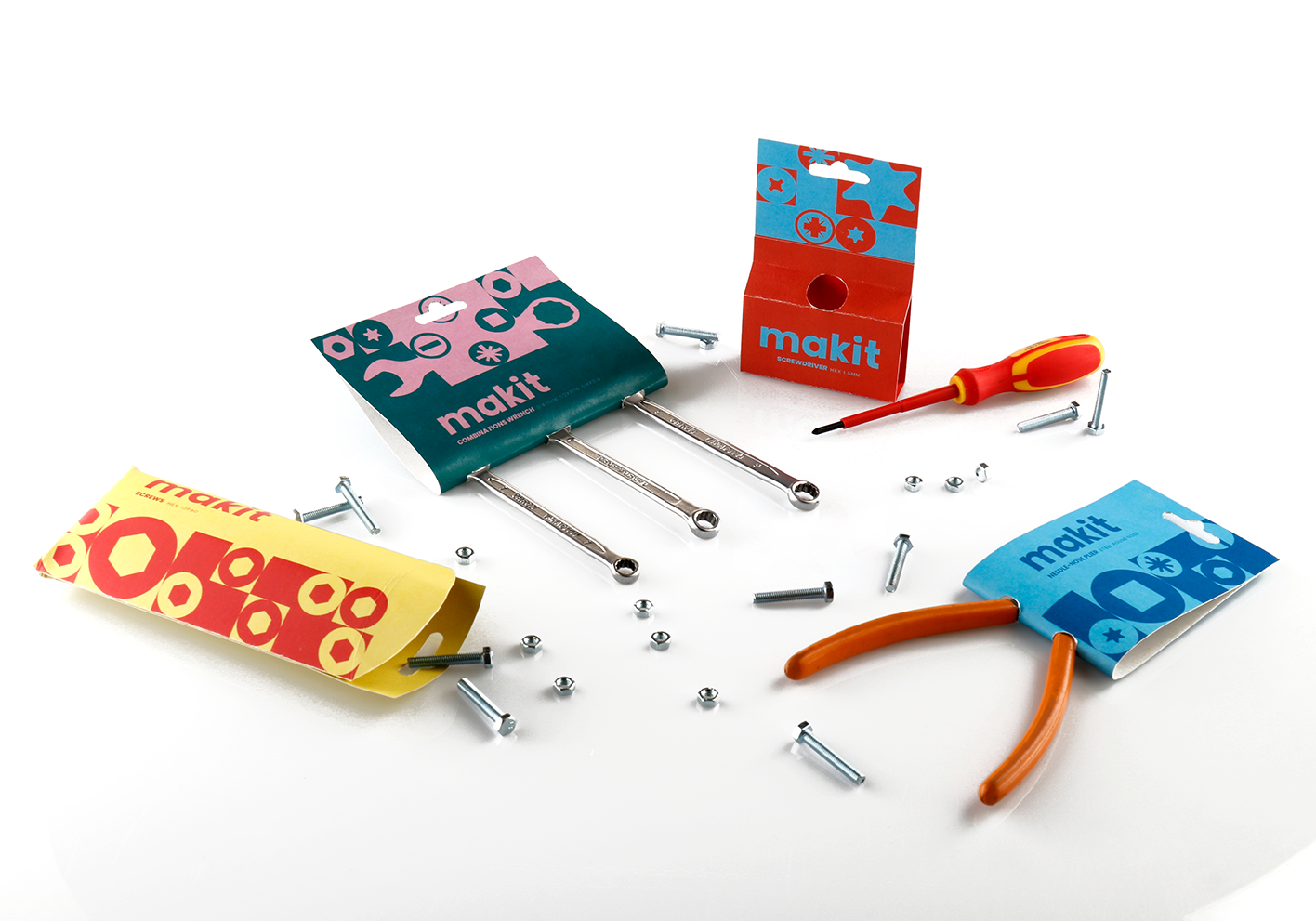 Makit marks the start of a new age. A hand tool brand that emphasizes education through a modular and dynamic visual language that encourages anybody to “go to work.” Along with DIY (Do it Yourself) arises an identity that does not differentiate between genders or wisdom, and where the only requirement for membership is a desire to not leave for tomorrow what may be done today. A set of images and symbols that complement the brand concept and aid in its disclosure while preserving consistency throughout the many apps is born through a minimalist visual style.